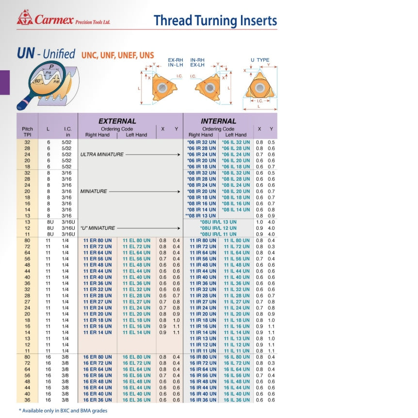 The UN Full Profile Internal Thread Turning Insert is engineered for cutting fine-pitch Unified threads (UNC, UNF, UNEF, UNS) with high precision. Designed for 32 TPI, this insert ensures the complete thread profile is accurately formed, including the crest, root, and flanks—ideal for demanding internal threading applications where fine threads are required.