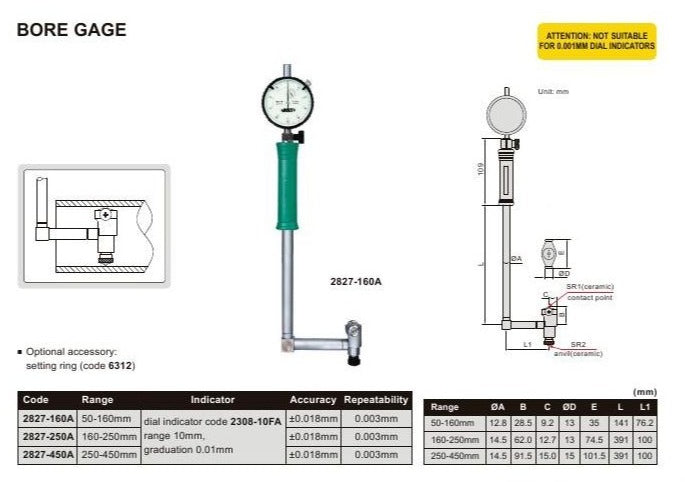 BORE GAUGE | 160 - 250mm x 0.01mm | INSIZE 2827-250A