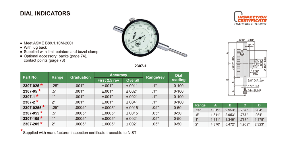 DIAL INDICATOR | 0 - 2" x 0.001" | INSIZE 2307-2