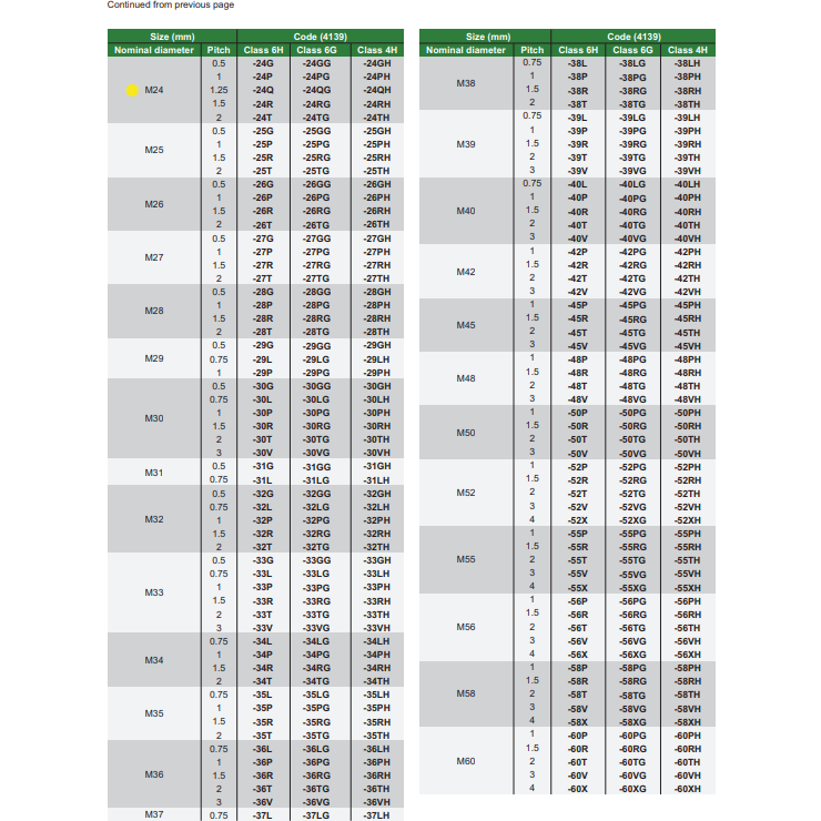 THREAD PLUG GAUGE M24 X 1.5 - 4139-24R