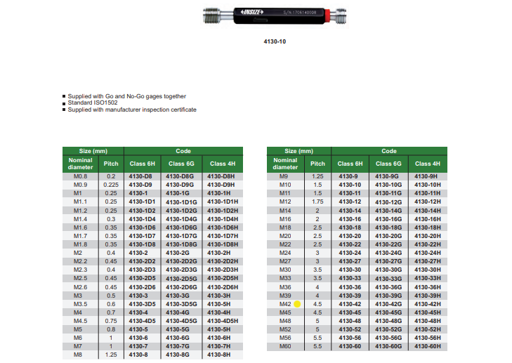 THREAD PLUG GAUGE M42X4.5 - 4130-42