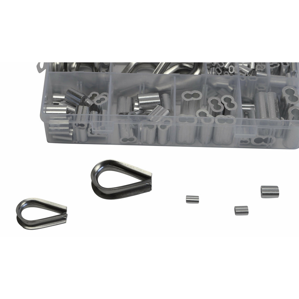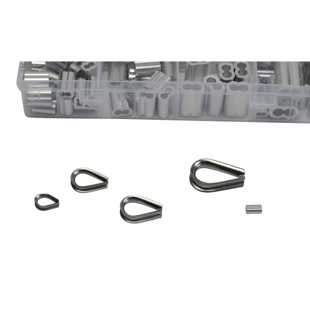 Ensure you're prepared for any cable or rope repair task with our expertly curated 274-Piece Thimble Loop Grab Kit. This comprehensive kit is designed for the repair or creation of cable and rope ends, providing protection from cracking or excessive wear. Perfect for marine, industrial, and general-purpose applications, this kit is an essential addition to any toolbox.