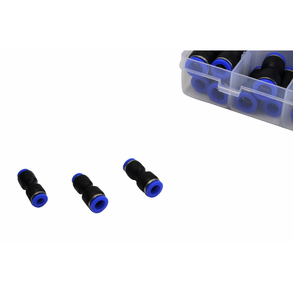 Ensure you're prepared for any tubing connection task with our expertly curated 63-Piece Straight Quick Connect Kit. This comprehensive kit includes a wide range of high-quality, one-touch fittings designed for instant tubing connections. Perfect for confined spaces, this kit is an essential addition to any toolbox, providing quick and reliable connections for various metric-sized tubes.