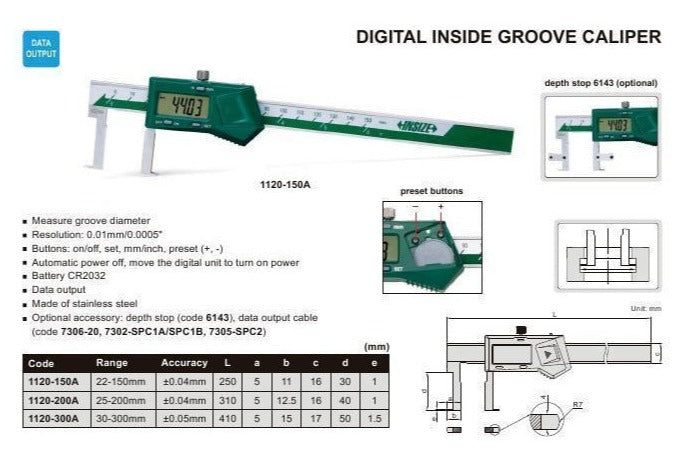 DIGITAL INSIDE GROOVE CALIPER - INSIZE 1120-150A 22-150mm