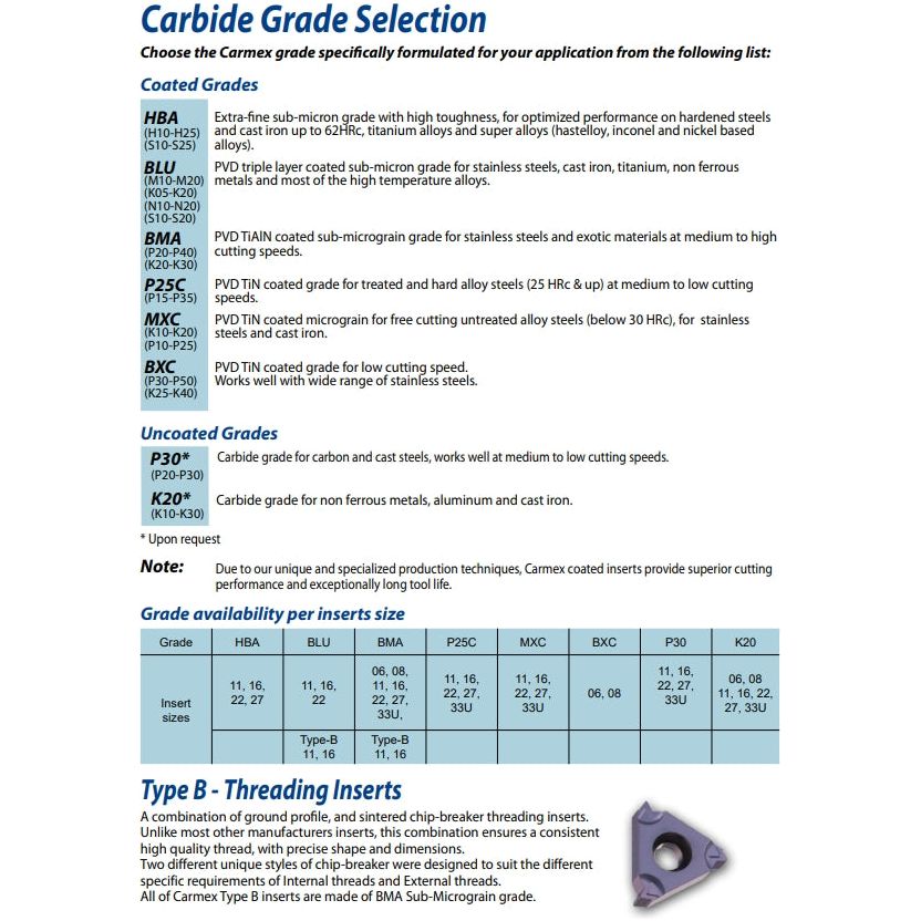 Manufactured from durable BMA-grade carbide, the insert delivers excellent wear resistance, edge integrity, and thermal stability. The optimized X and Y dimensions provide smooth cutting action, effective chip control, and consistent thread quality across a variety of materials.