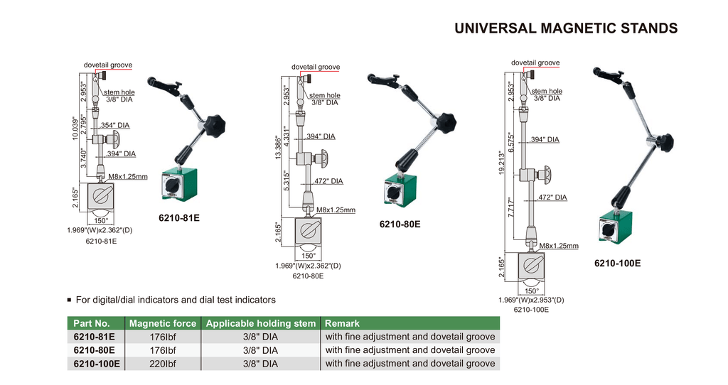 • Suits Imperial Digital Indicators and Imperial Dial Indicators