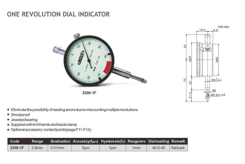 ONE REVOLUTION DIAL INDICATOR - INSIZE 2306-1F