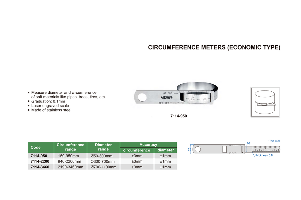CIRCUMFERENCE TAPE | 60-950mm x 0.1mm | INSIZE 7114-950