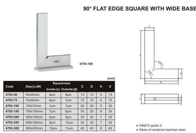 90 DEGREE FLAT EDGE SQUARE - INSIZE 4793-200 200X130mm