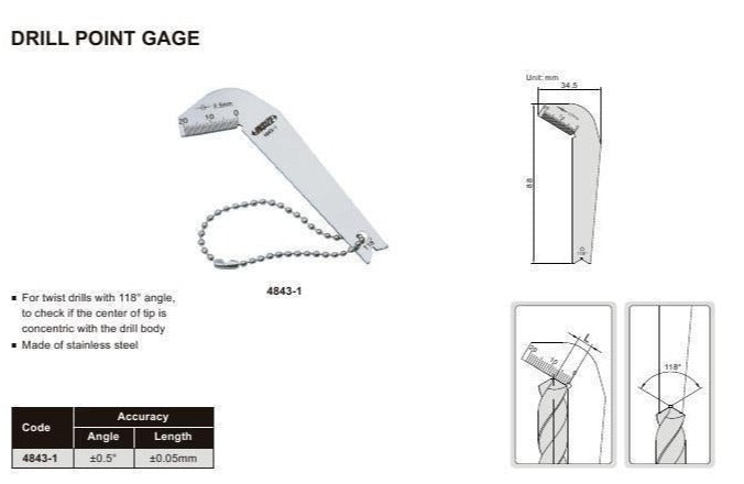 DRILL POINT GAUGE | INSIZE 4843-1