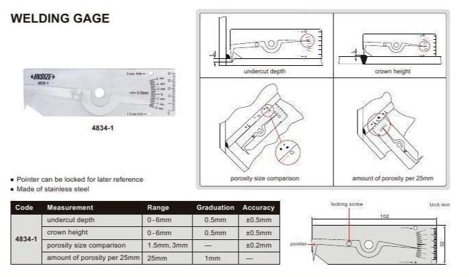 Well designed, durable high precision tools that are suitable for various measuring ranges. INSIZE welding gauges are the perfect instrument for measuring a wide range of welds. Easy to use welding gauge for checking alignment and dimensions prior to welding.