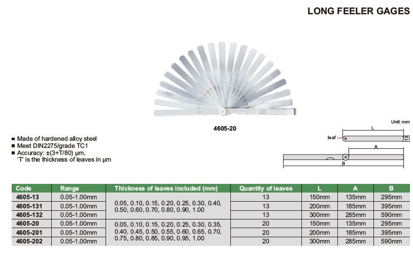 LONG FEELER GAUGE - INSIZE 4605-201 0.05-1mm