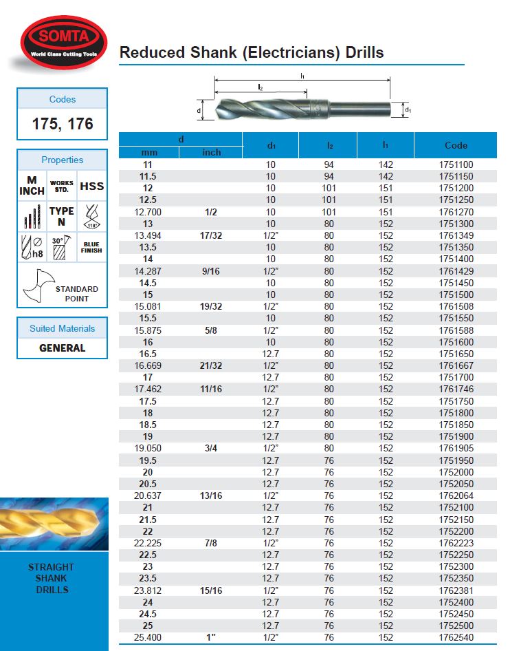 The SOMTA 1751600 16.00 mm Reduced Shank Drill combines accessibility with professional-grade performance—ideal for maintenance, fabrication, and workshop drilling where full-size shanks are impractical.