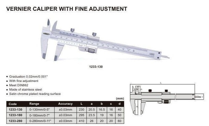 VERNIER CALIPER - INSIZE 1233-180 0-180mm / 0-7"