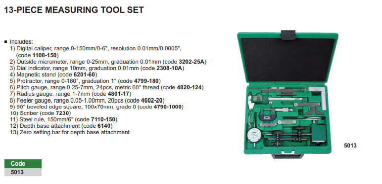 MEASURING TOOL SET | 13pc | INSIZE 5013