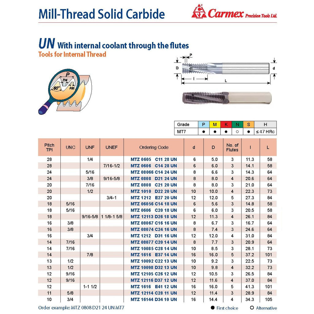 - Type: Mill-Thread Solid Carbide (MTZ)
