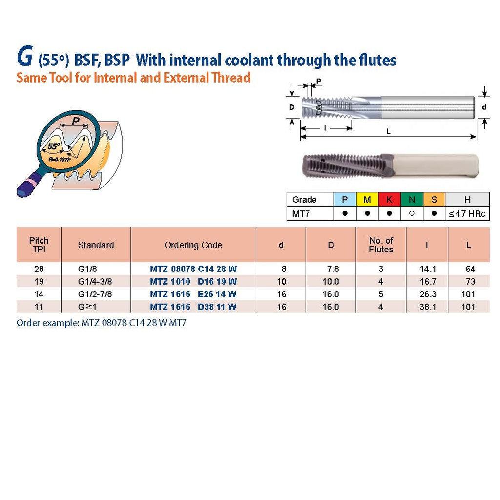 - Type: Mill-Thread Solid Carbide (MTZ)