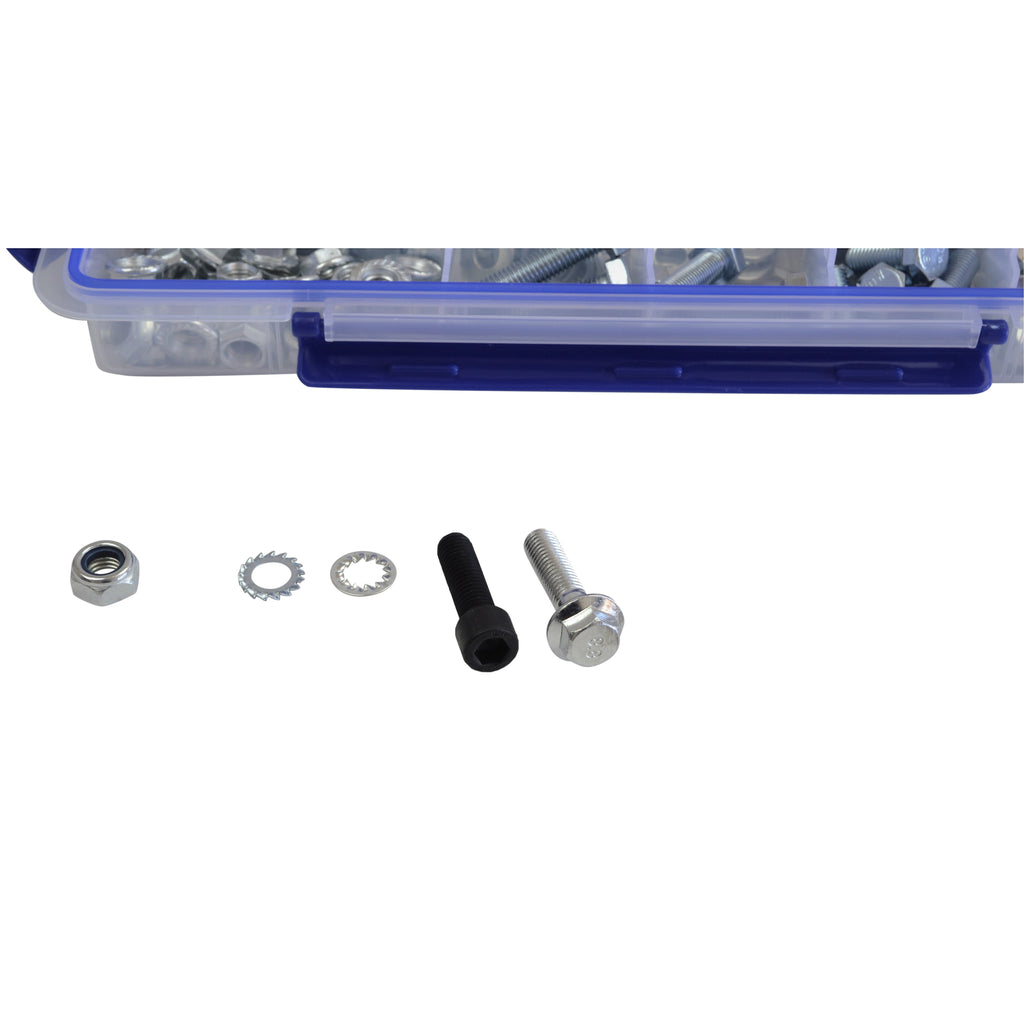 Ensure you're prepared for any mechanical task with our expertly curated 401-Piece Nut, Bolt, Washer Assortment Kit. This comprehensive kit includes a variety of high tensile grade 8.8 nuts, bolts, and washers, designed to provide lasting strength and stability. Perfect for automotive, industrial, and home repair projects, this kit is a must-have addition to any toolbox.