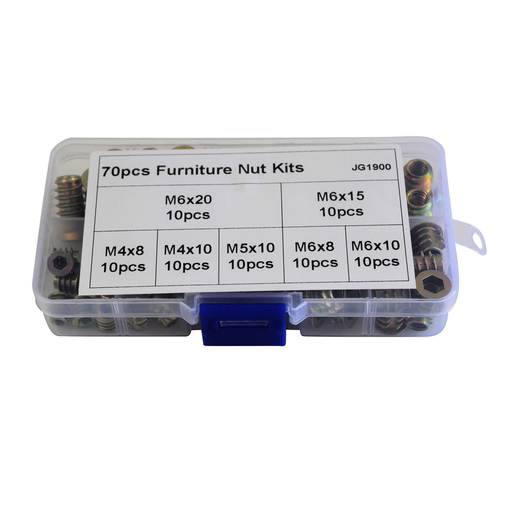 • Comprehensive Selection: Includes 70 pieces of assorted furniture nuts to cover a wide range of applications.