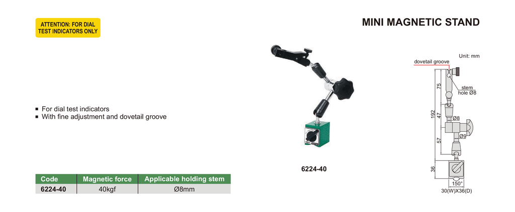MINI MAGNETIC STAND - INSIZE 6224-40 40Kgf