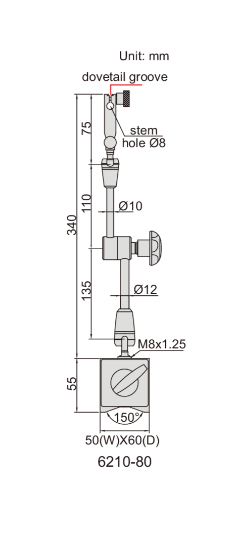 UNIVERSAL MAGNETIC BASE - INSIZE 6210-80 80Kg