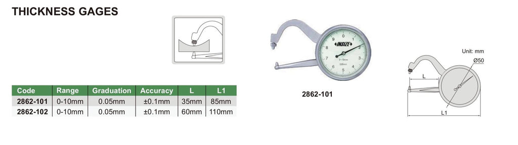 THICKNESS GAUGE | 0 - 10mm x 0.05mm | INSIZE 2862-102
