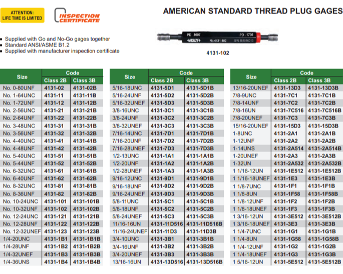 1/4"-28 UNF THREAD PLUG GAUGE - 4131-1B2