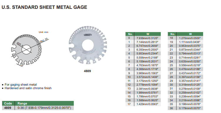 SHEET METAL GAUGE 0-36G - INSIZE 4809