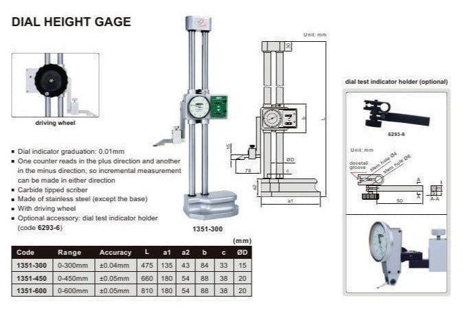 DIAL HEIGHT GAUGE - INSIZE 1351-300 0-300mm