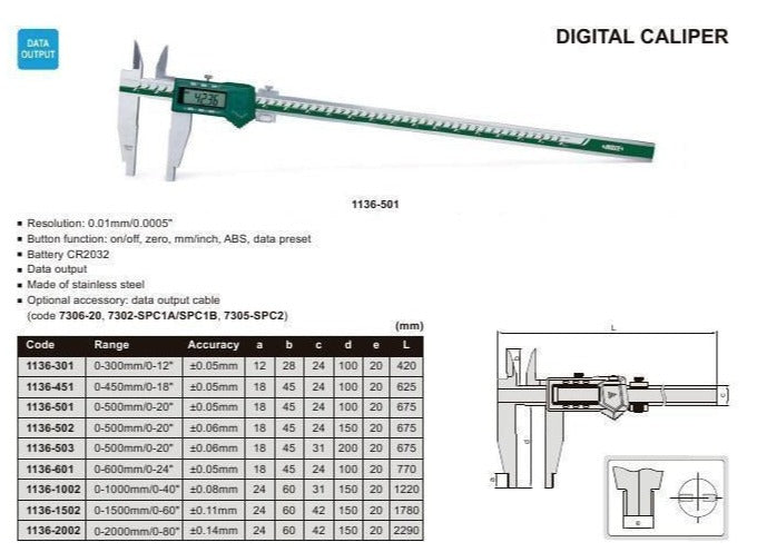 DIGITAL CALIPER - INSIZE 1136-501 0-500mm / 0-20"