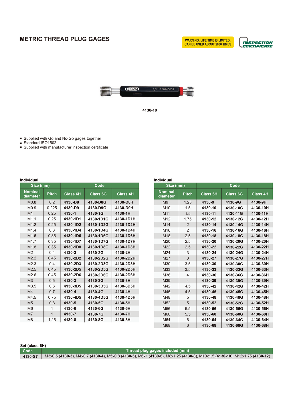 Well designed, durable high precision tools that are suitable for various measuring ranges. INSIZE thread plug gauges are the perfect instrument for determining the pitch diameter of a wide range of components. Easy to use adjustable thread plug gauges to measure pitch diameter and check tolerance of mating parts.