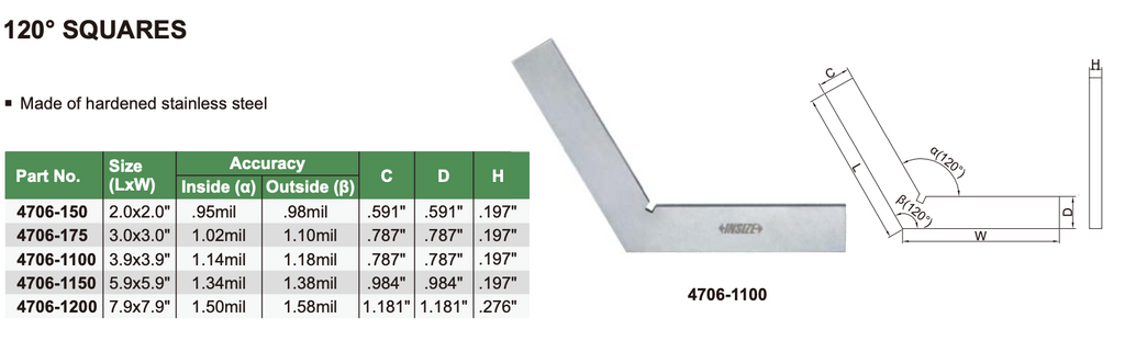 120 DEGREES SQUARE | 100x100mm | INSIZE 4706-1100