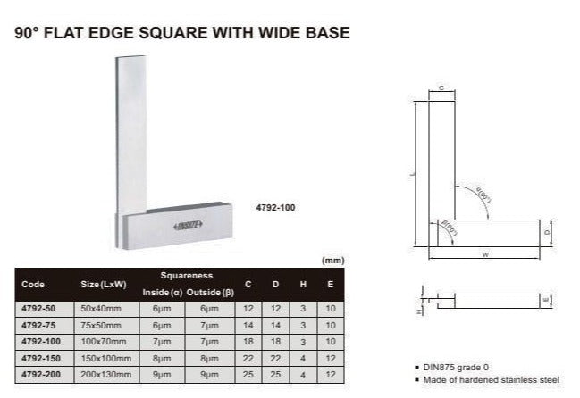 90 DEGREE FLAT EDGE SQUARE - INSIZE 4792-150 150X100mm