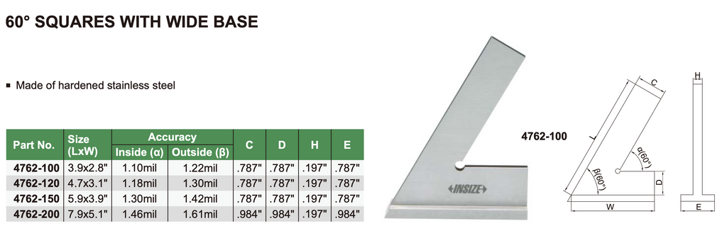 60 DEGREE SQUARE - INSIZE 4762-200 200X130mm