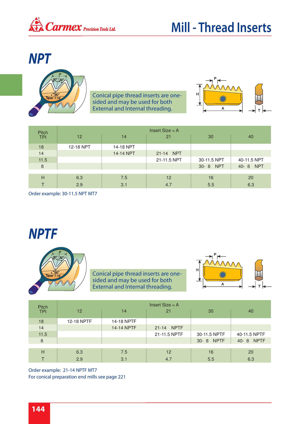 Carmex External/Internal NPT Threadmill Insert 21mm/ 14 TPI