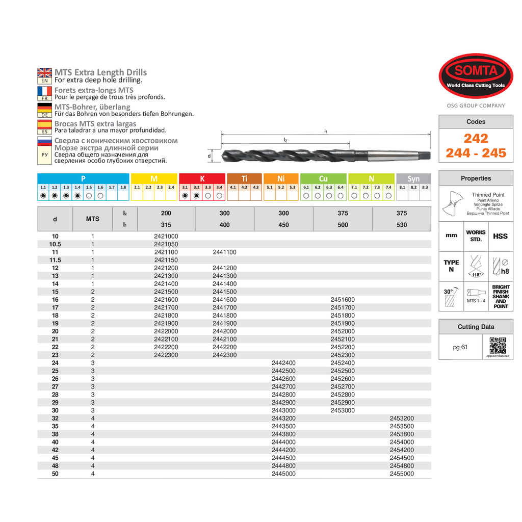 The SOMTA 2421500 is a high-performance extra-length drill designed for professionals who need reach, power, and accuracy when it matters most. It’s the go-to tool for deep-hole applications in large-scale machining environments.