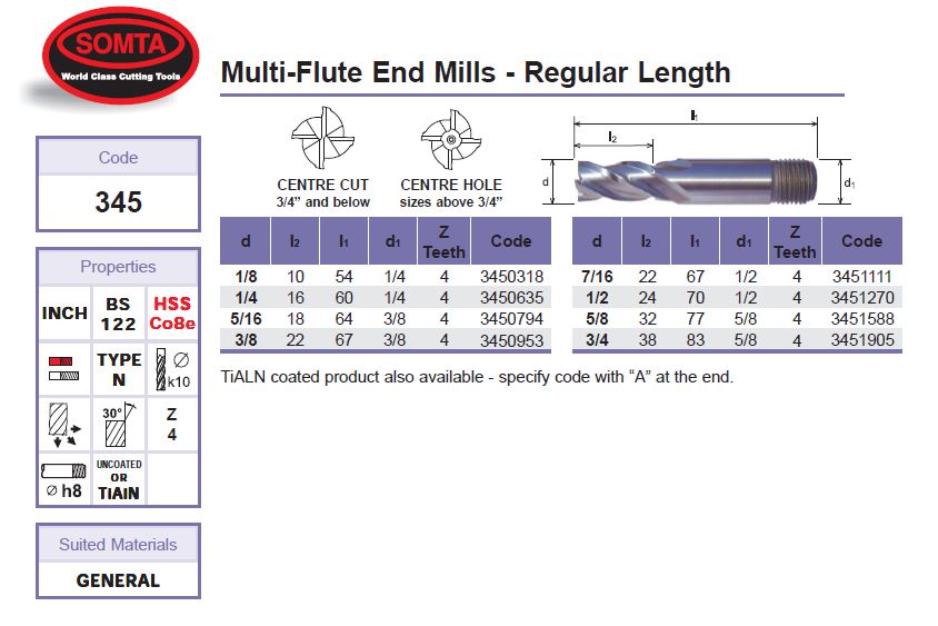 The SOMTA 3451588 is the go-to end mill for rough and production milling tasks, combining imperial sizing with cobalt-enhanced strength and precision.