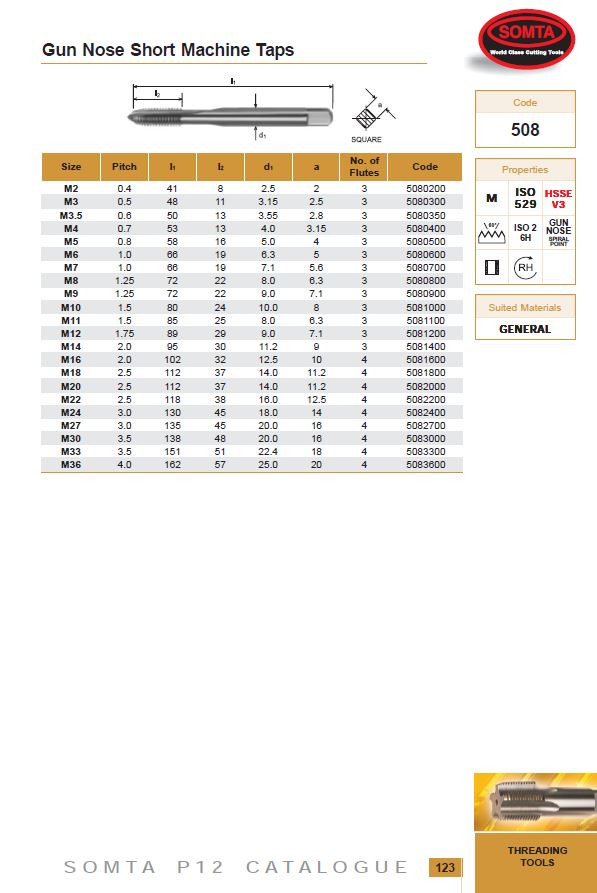 The SOMTA 5081000 offers productivity, accuracy, and durability for through-hole tapping—ideal for industrial applications demanding performance and consistency.