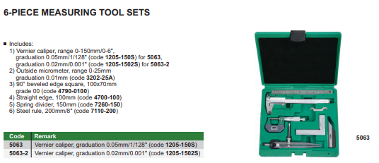 INSIZE 6 PC MEASURING TOOL KIT - 5063