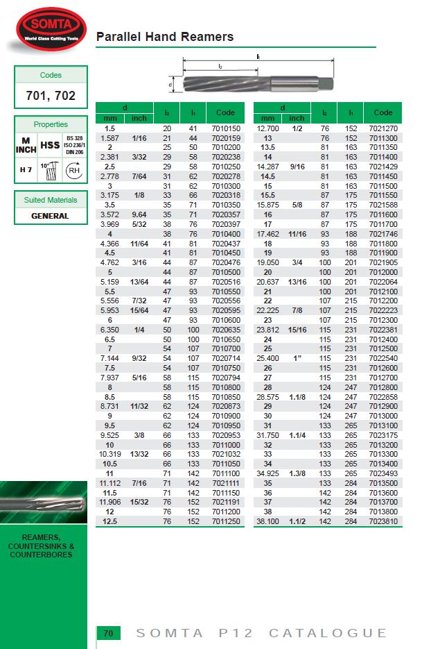 The SOMTA 7010600 hand reamer is trusted for precision finishing in engineering workshops and field applications alike. With its straight-flute design and HSS construction, it guarantees accurate reaming results and long-lasting performance.