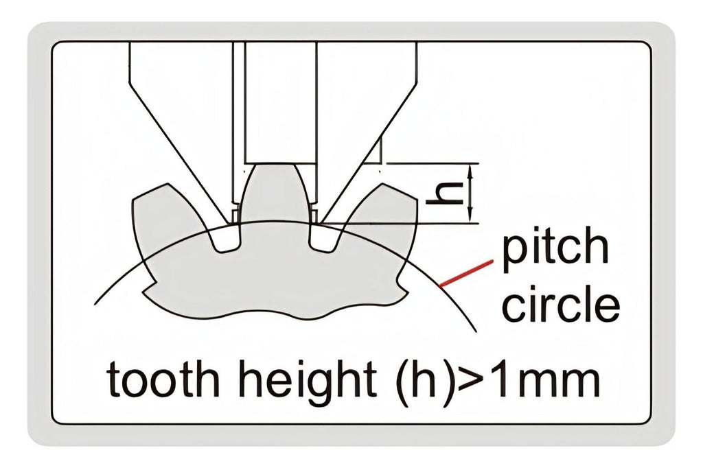 • Measure the tooth thickness by positioning the tooth height