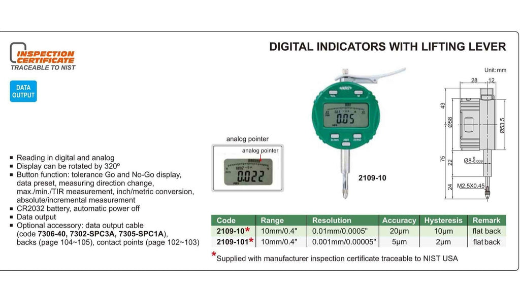 Insize Lifting Lever Digital Indicator