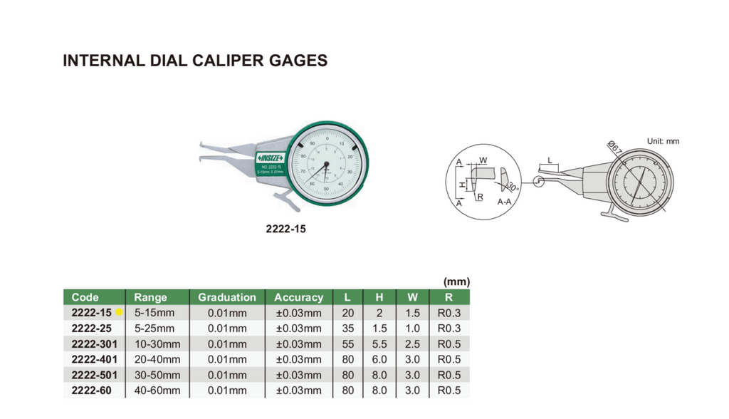 INTERNAL DIAL CALIPER GAUGE - INSIZE 2222-15 5-15mm