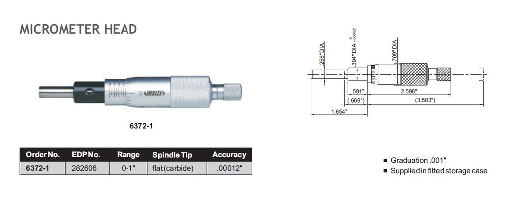 MICROMETER HEAD - INSIZE 6372-1 0-1"