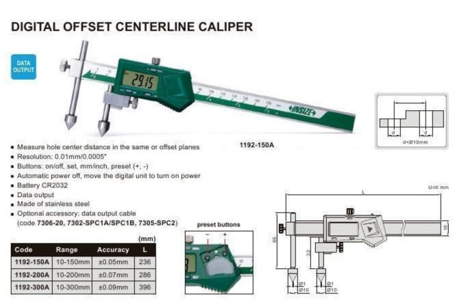 DIGITAL OFFSET CALIPER - INSIZE 1192-150A 10-150mm
