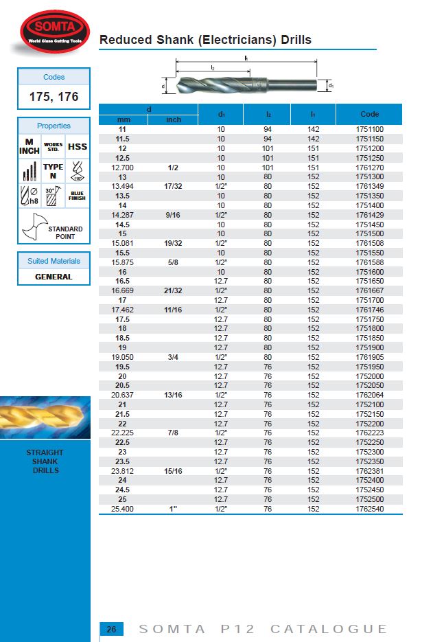 HSS Reduced Shank Drill 20.00mm – Somta Series 175