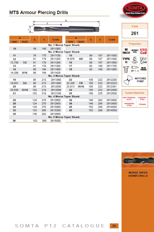 Somta Series 261 – HSS Armour Piercing Drill 20.0mm