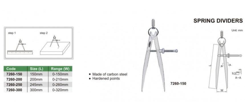 Well designed, durable high precision tools that are suitable for various measuring ranges. INSIZE dividers are the perfect instrument for measuring a wide range of components. Easy to use and adjust divider for measuring distances between objects.
